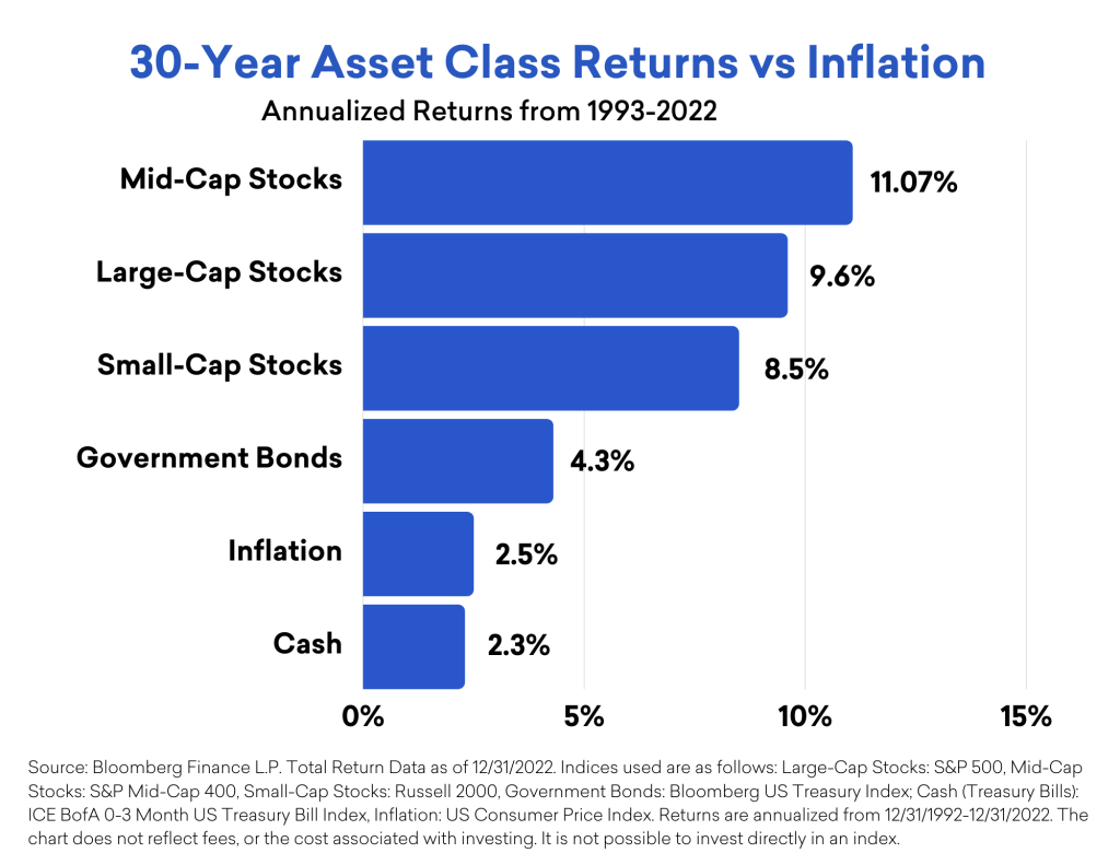 As history has shown us, investing is a powerful tool to beat inflation and help your money grow. By putting your money to work in the stock and bond markets, you have the potential to earn returns that could outpace the rate of inflation. This means your money could grow faster than the cost of goods and services, allowing you to preserve your purchasing power over time.