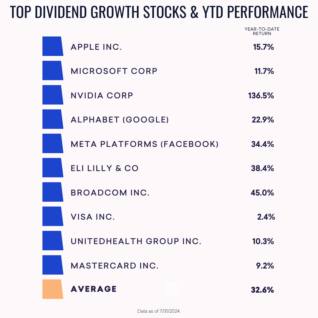 1- Dividend Growth ETFs represented by the WisdomTree U.S. Quality Dividend Growth Index. Performance and data as of 7/31/2024.